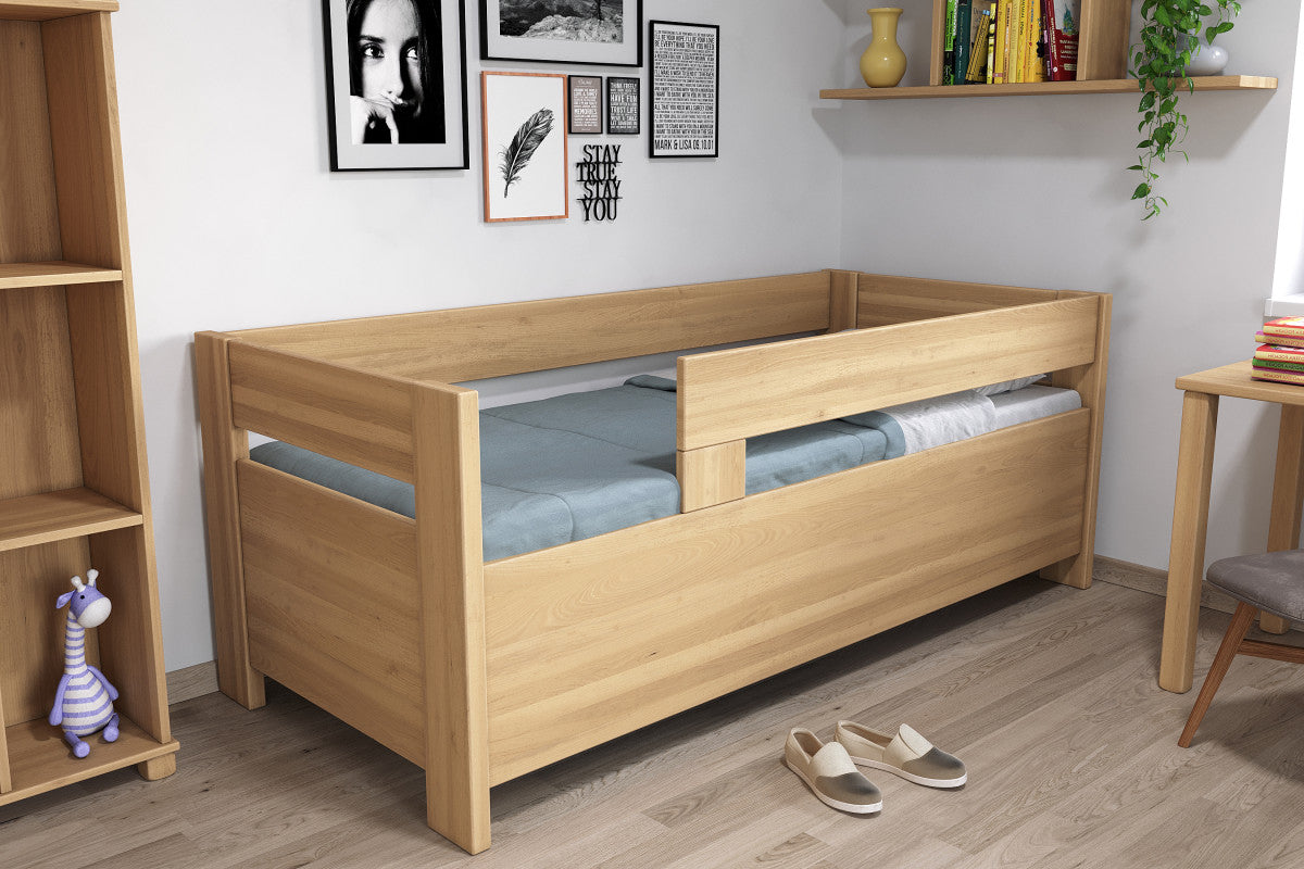 A tárolóhellyel rendelkező Ela ágy tömör bükkfából készült.