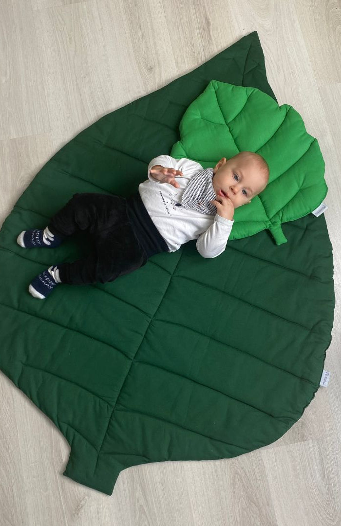 Falevél gyerek játszószőnyeg és takaró - méregzöld