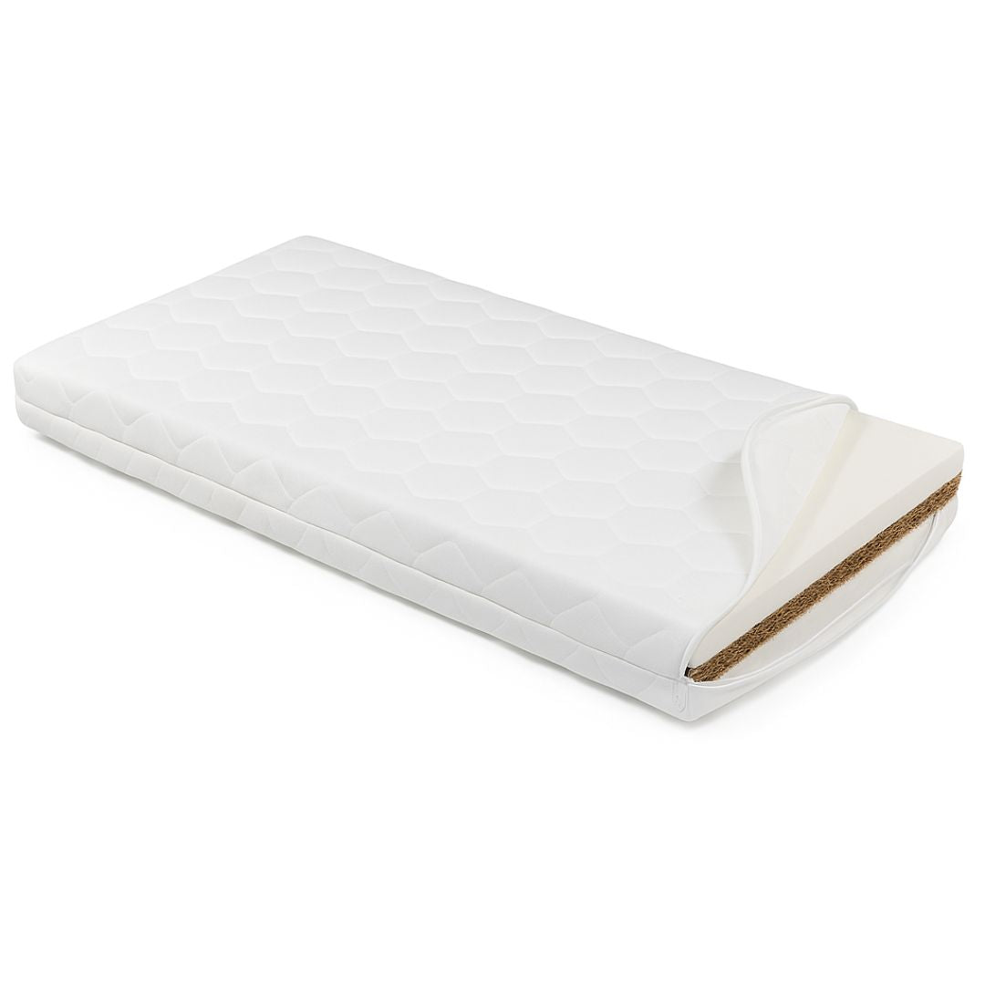 Tartalmaz továbbá egy 20 mm vastag kókuszréteget, amely kókuszrostokból nemezeléssel kialakított természetes anyag, kiváló nedvesség és légáteresztő képességével hozzájárul a természetes alvás kényelméhez. A kókuszrost igen erős szilárdságával a gerincoszlop optimális alátámasztását biztosítja. A hab magassága 2x30 mm Aircell 25 kg/m3.