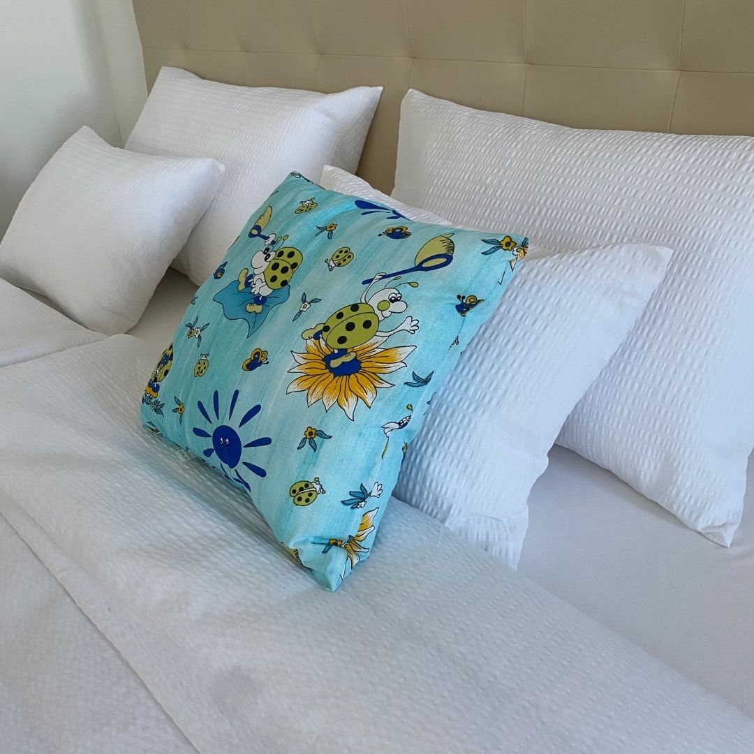 Esztétika és funkció harmóniája egyesül ebben a párnában. Kényelmes és puha, így gyermeke bármikor szívesen hajtja majd álomra a fejét rajta, mindemellett a kicsi szobáját is remekül feldob. A katicás minta az egyik legkedveltebb kisgyermekes vásárlóink körében. Ez a párna egybe van varrva a töltettel, ezáltal egyszerűen ki tudja mosni az egész ágyneműt anélkül, hogy veszítene a formájából vagy minőségéből. Ez kimondottan fontos az allergiára hajlamos gyermekeknél.