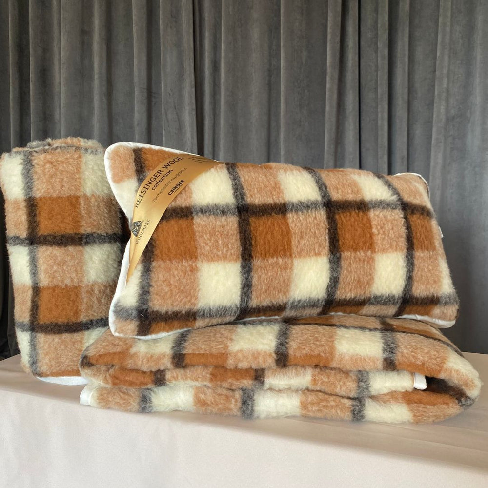 Ez a bárány gyapjú garnitúra hagyományos és modern, újszerű környezetben is megállja a helyét, semleges színeinek köszönhetően számos dekorációhoz remekül passzol. A takaró és a párna mindkét oldala 100% bárány gyapjú.