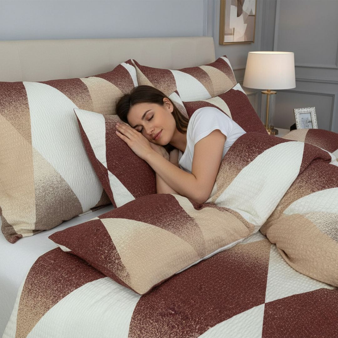 Krepp ágyneműhuzat garnitúra 3 db-os - Barna/bézs mintás
