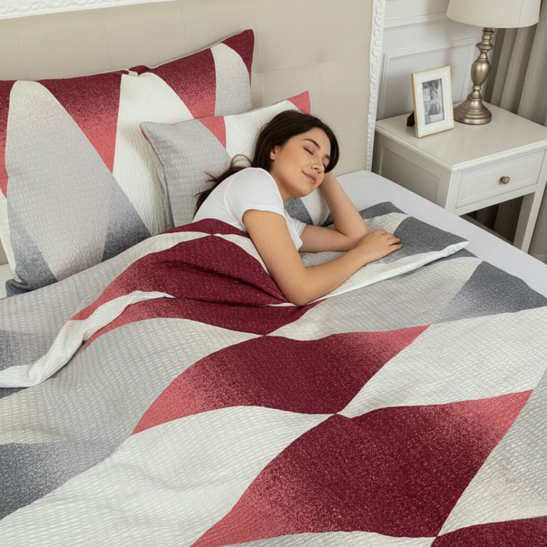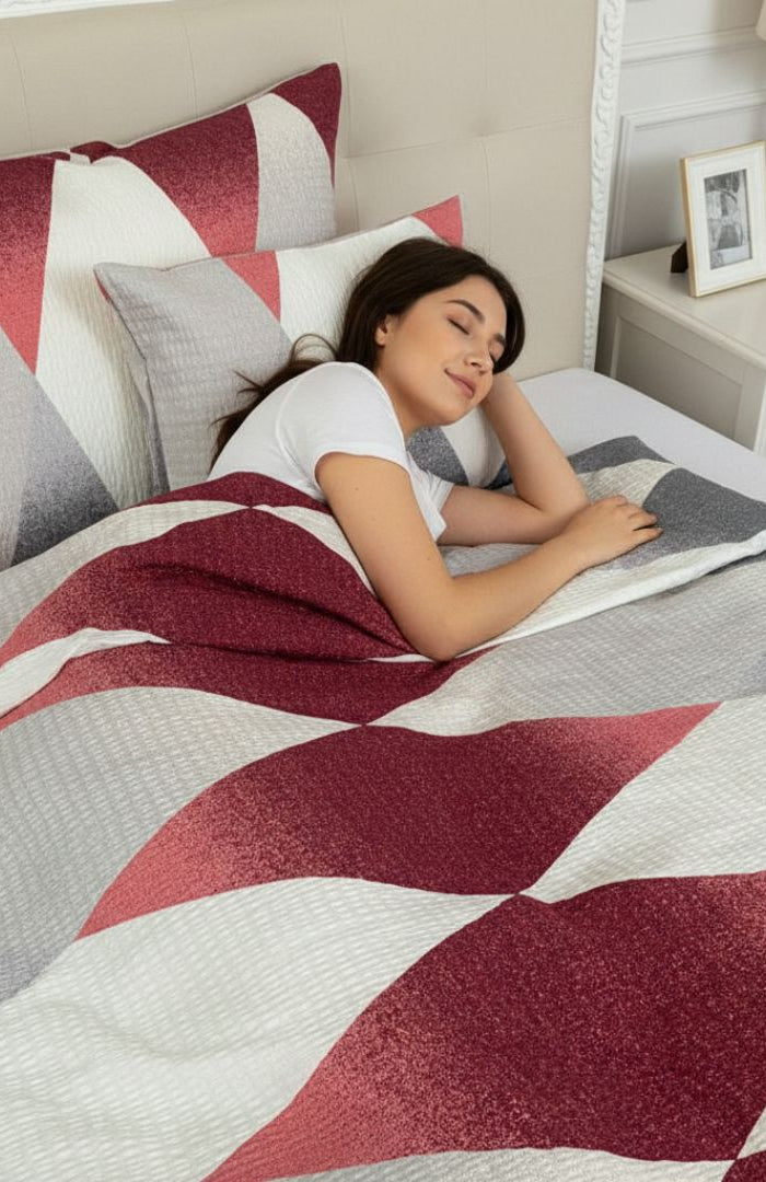 Krepp ágyneműhuzat garnitúra 3 db-os - Bordó/bézs mintás