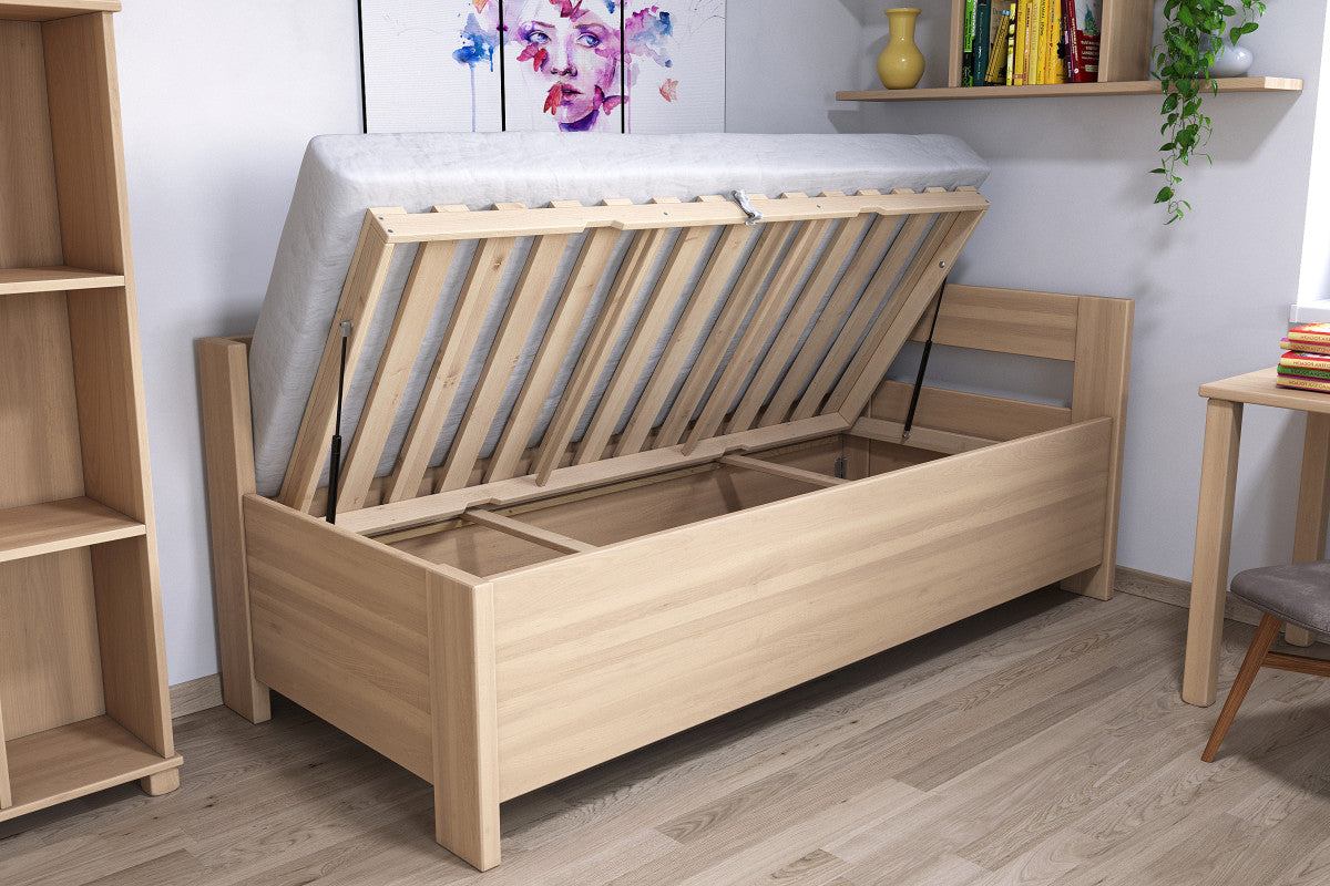 A tárolóhellyel rendelkező Ela ágy tömör bükkfából készült.