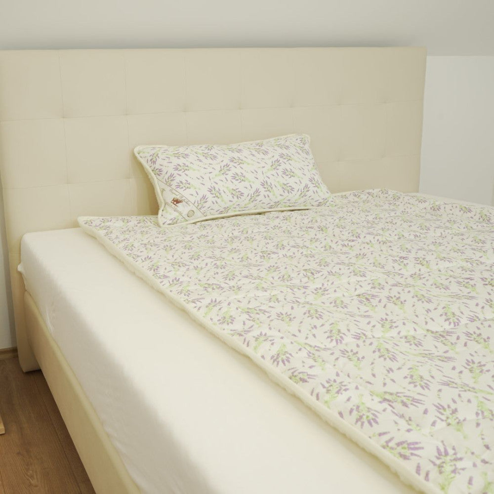 A Merino gyapjú számos előnyéről ismert: kellemes, puha és antiallegén. Továbbá magas komfortérzetet nyújt, így nem is párosíthattunk volna jobb növényt, mint a levendula, amely frissesség mellett még a szobát és a hangulatot is feldobja.