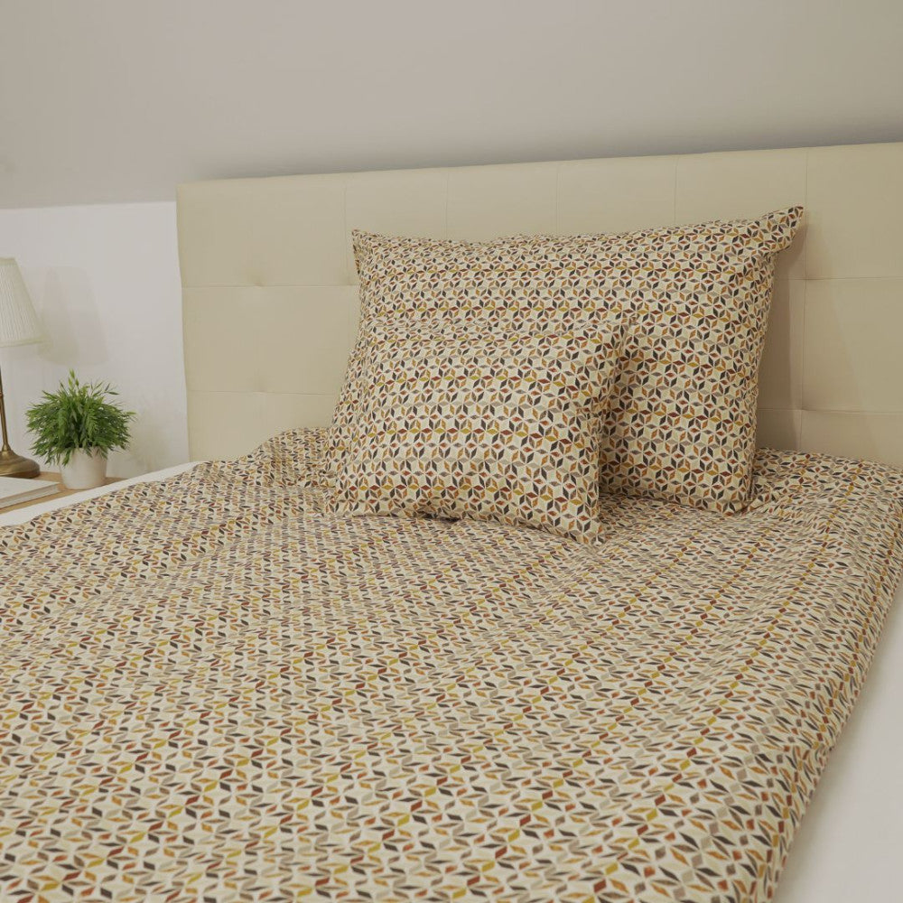 Pamut ágyneműhuzat garnitúra - 3 db-os - Barnás geometriai mintás