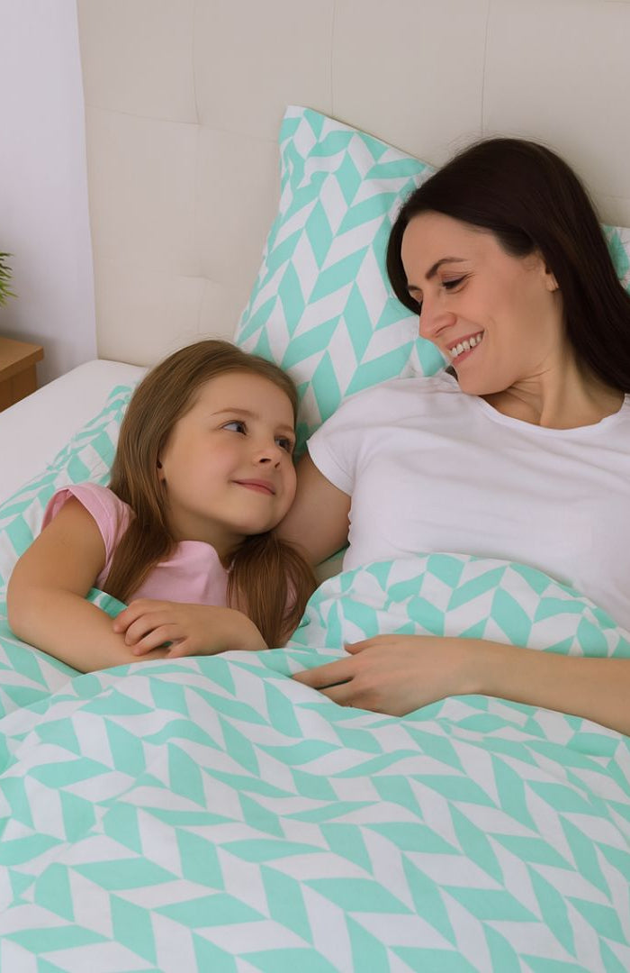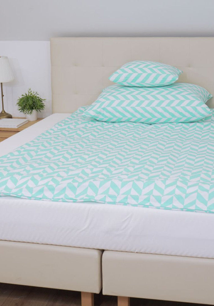 Pamut ágyneműhuzat garnitúra - 3 db-os - Türkiz-fehér mintás