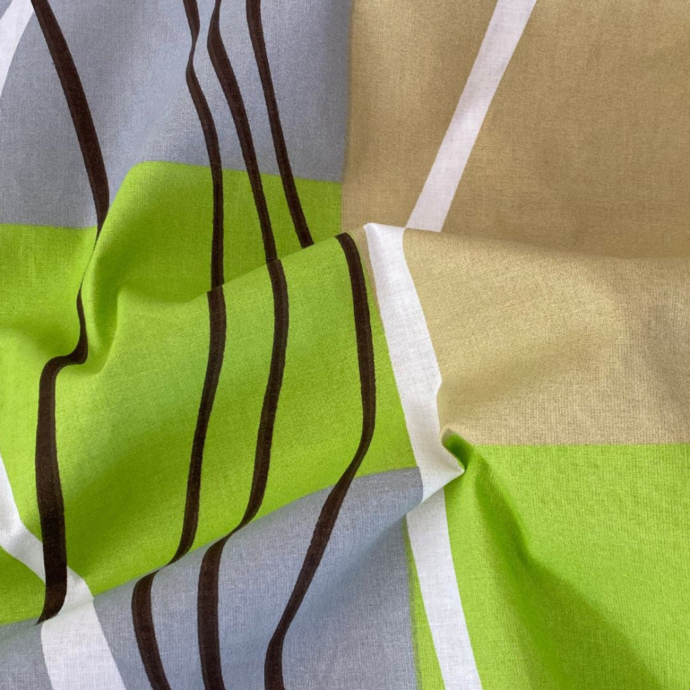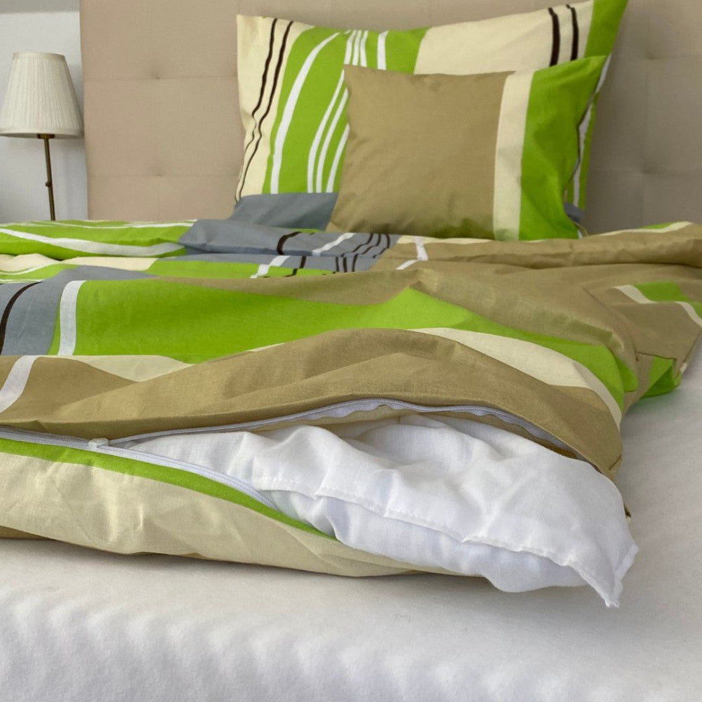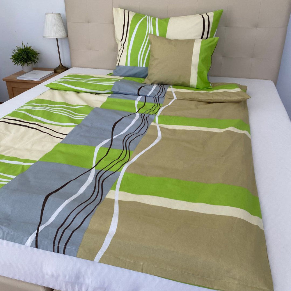 Pamut ágyneműhuzat garnitúra - 3 db-os - Zöld/bézs mintás