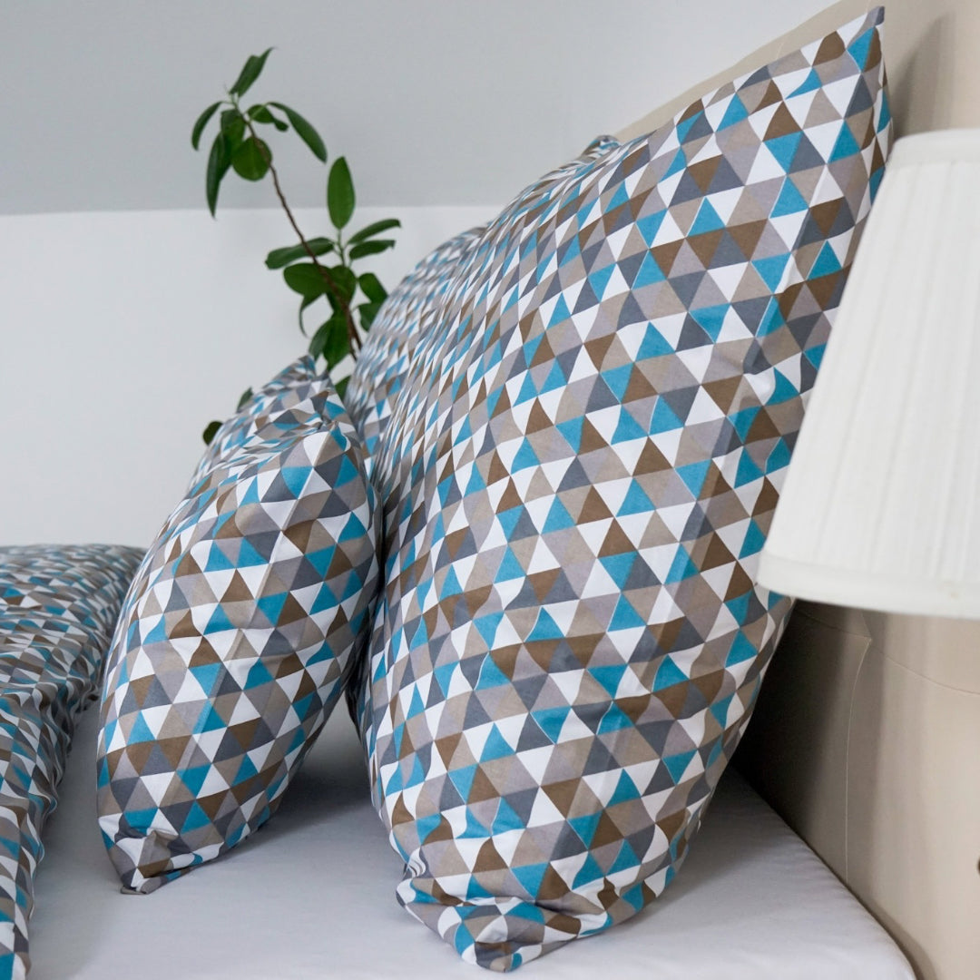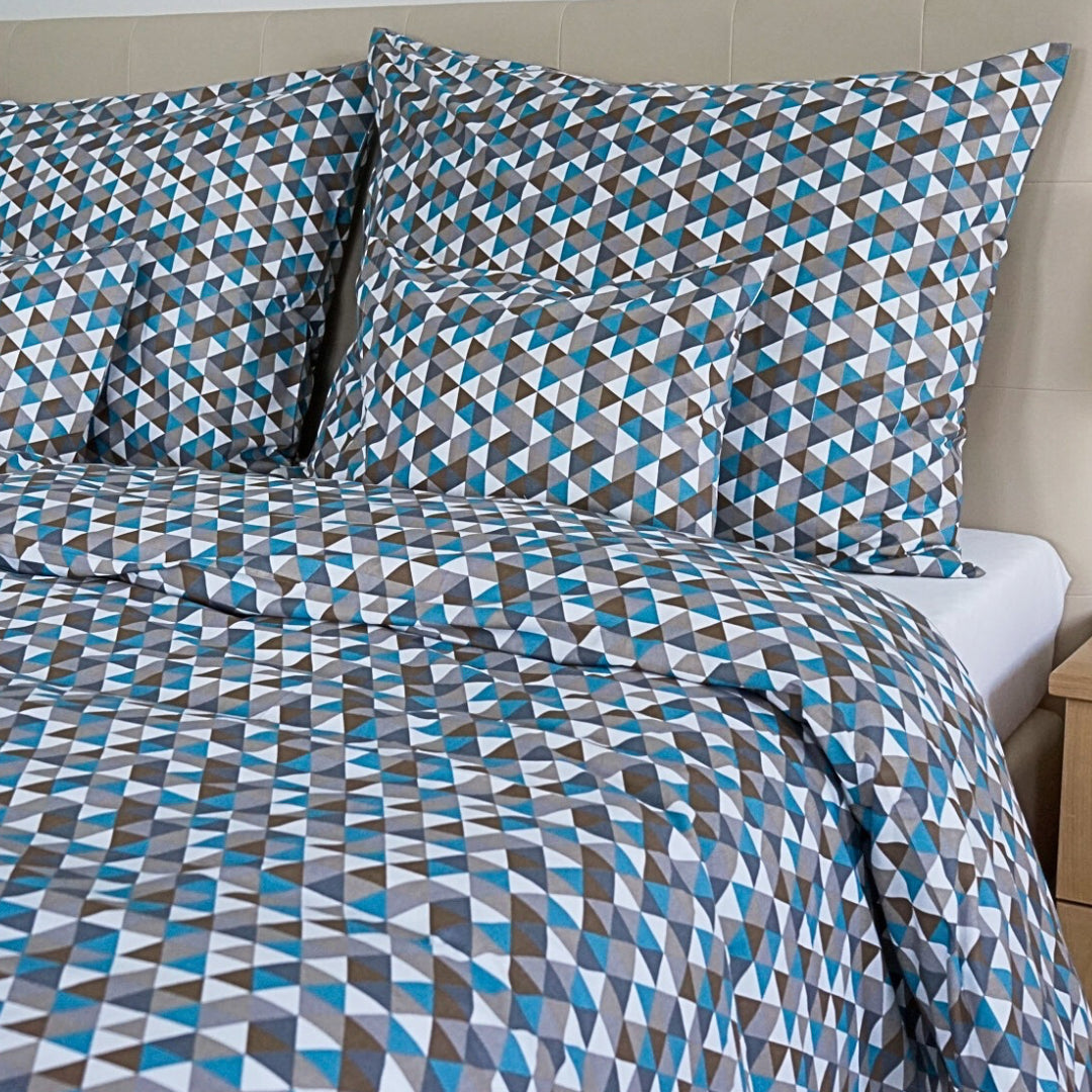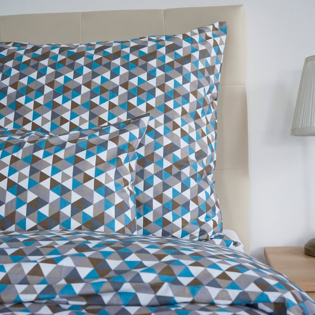 Pamut ágyneműhuzat garnitúra - Kék háromszög mintás