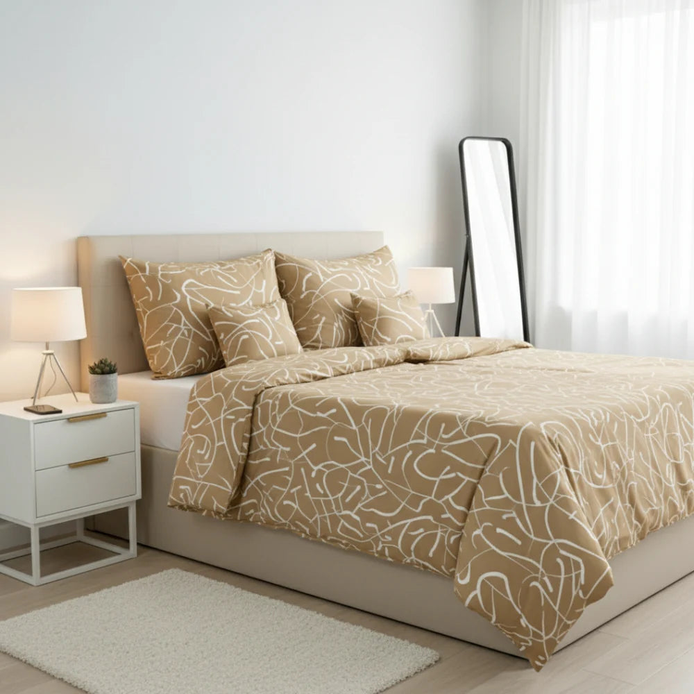 Pamut ágyneműhuzat garnitúra - Karamell fehér mintával