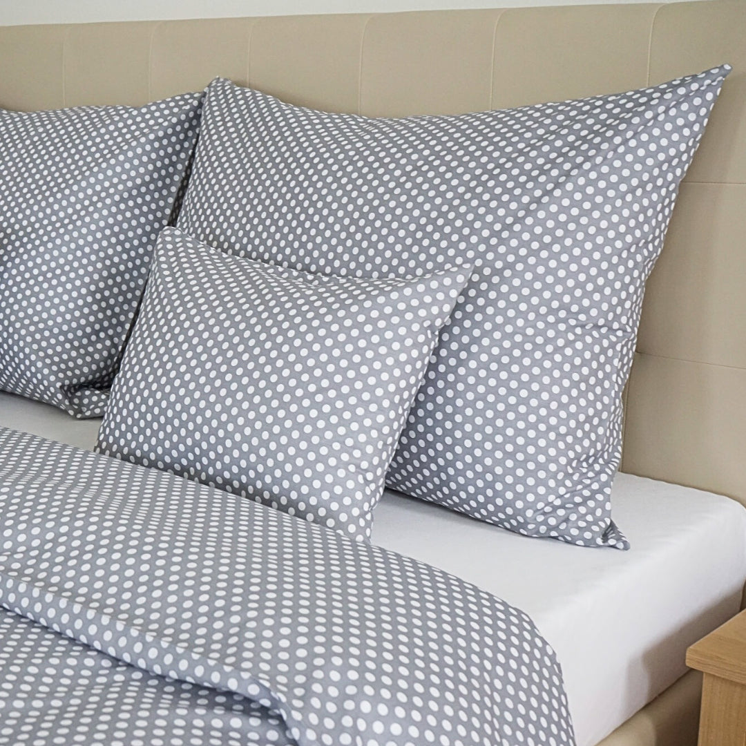 Pamut ágyneműhuzat garnitúra - Szürke pöttyös