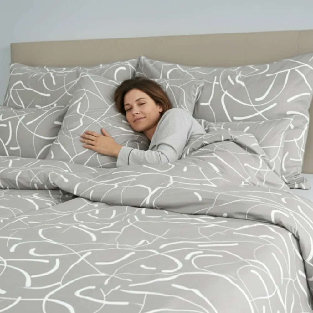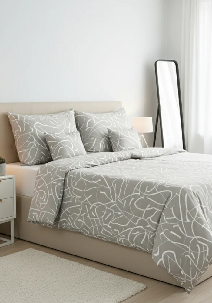 Pamut ágyneműhuzat garnitúra - Világos szürke fehér mintával