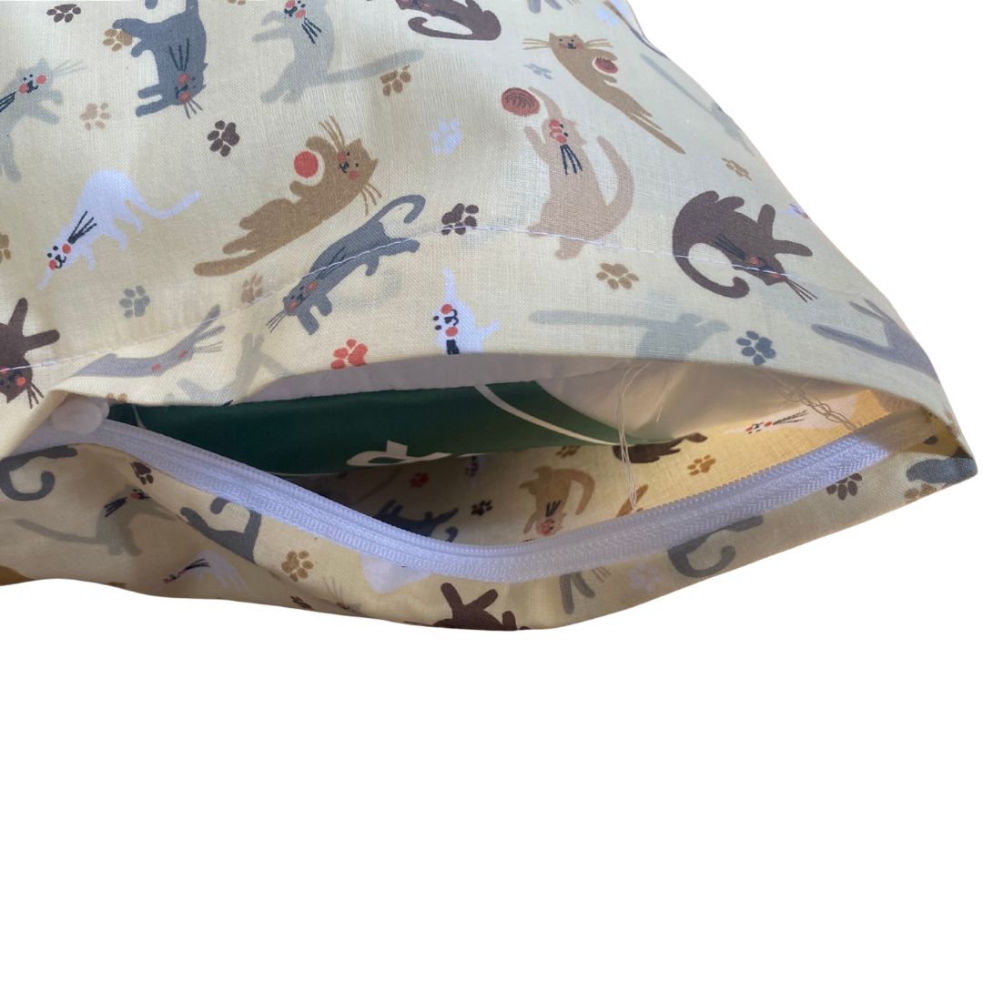 A 100% pamutból készült kispárnahuzat bőrbarát és kényelmes, így ideális a mindennapi használatra. Könnyen tisztítható, jól bírja a gyakori mosást, miközben megőrzi puhaságát és formáját. Rejtett cipzáras kialakítása elegáns megjelenést és egyszerű kezelhetőséget biztosít.