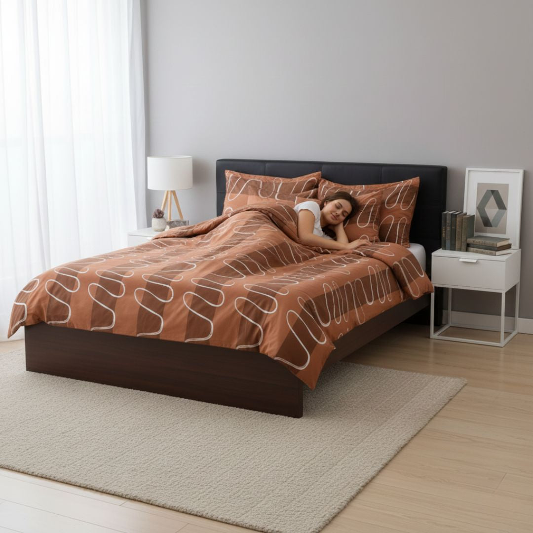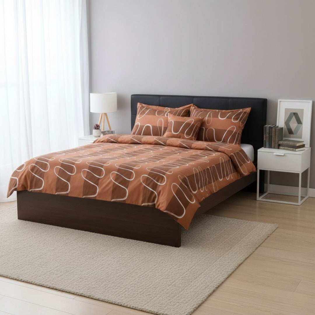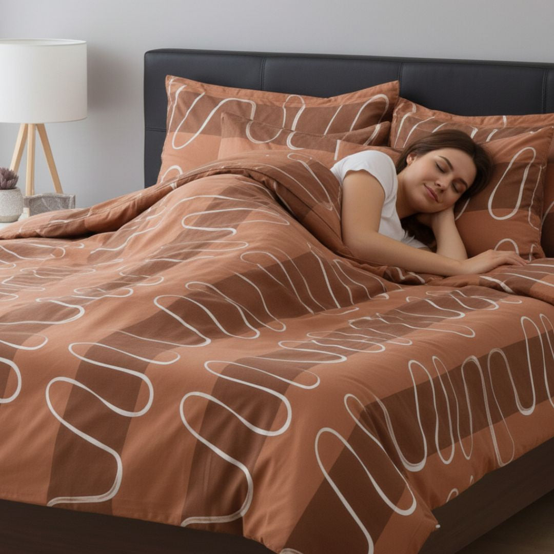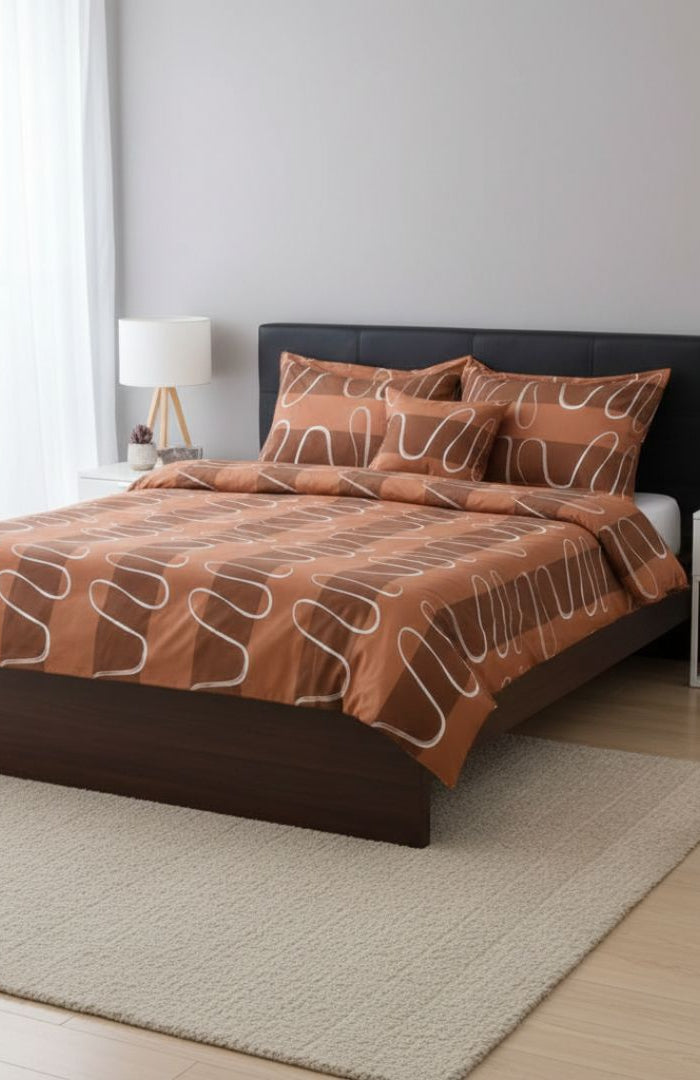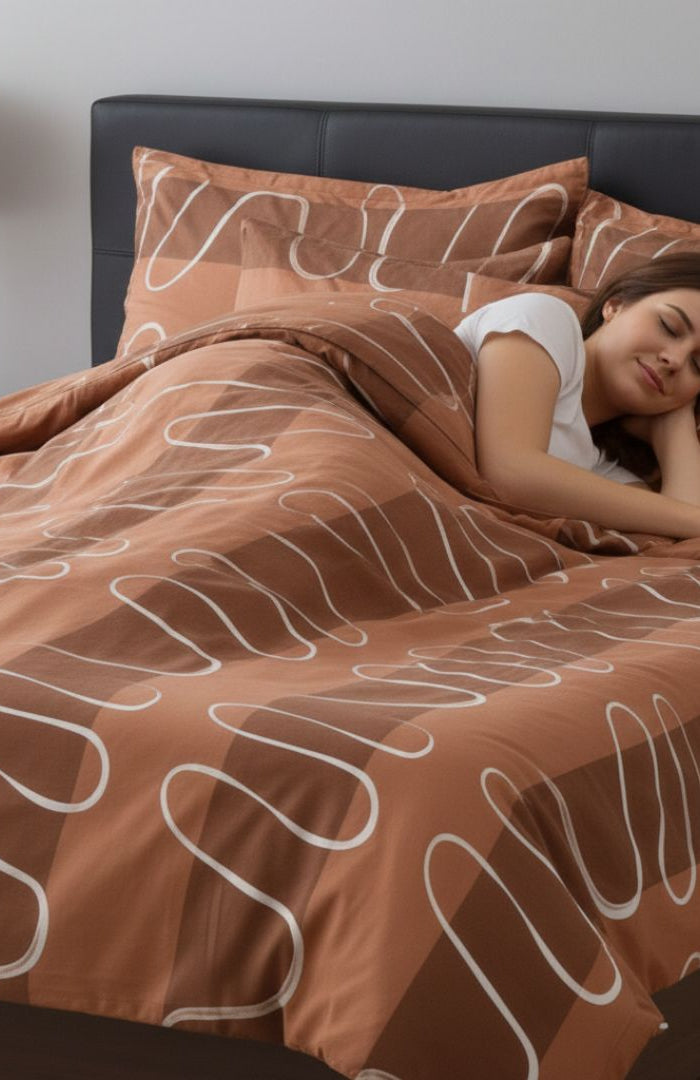 Pamutszatén ágyneműhuzat garnitúra - 3 db-os - Barna/Fehér hullám