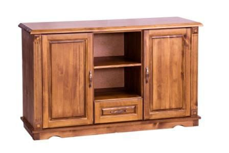 A komódon a termékcsaládra jellemző motívumok találhatóak, ezért minőségibb megjelenést kölcsönöz. Fiókjai fém síneken gördülnek. A termék teljes egészében tömör borovi fenyőfa.